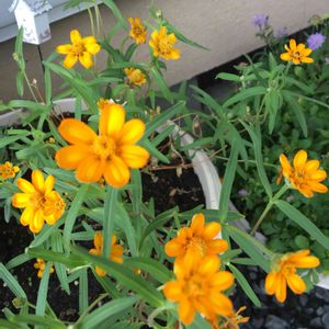 おはようございます🤗 ジニア リネアリスさん🌼 🌀の強風にも負けずピンと上向き⤴️ 可愛く咲いてくれてます💛 むしろあちらの千日紅🎈 乱れ気味の細い茎が💦 どうにか自立してる感じです🔃😅 台風一過🌀また暑くなるね〜🔥☀️🔥 気温もだけどジトジトの湿度💧 どうか下がって〜😓 カラッとね✨