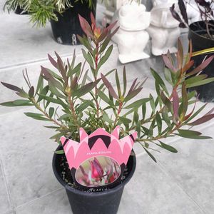 鉢植えのリューカデンドロン(レウカデンドロン)・ハーレクインが咲きました✨。ラベルの写真と全然違うのですが可愛いのでヨシとしましょう😆。
