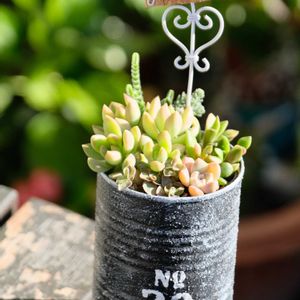 多肉寄せ植え💕 孫が作成途中に帰ったので、残りを入れて完成させました😅 ただピックを挿したかっただけなんだと思います🤣 この缶の前の住人はグリーンネックレスで夏中頃迄は元気だったのに… 夏が長過ぎた〜😭