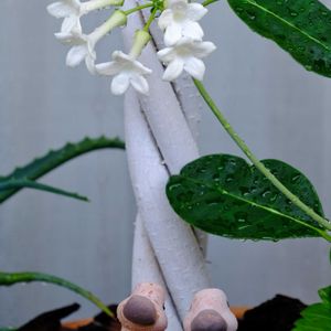 マダガスカルジャスミンさん💕 ベンジャミンゴムノキのお花ではありません🤣 生育力旺盛で離れた場所からベンジャミンに巻き付いて、今沢山咲いてます😊 ベンジャミンも巻き付かれて去年より葉が沢山茂ったような…🤭