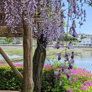 近くの藤棚とツツジさんです❤ 田植えも終わりのどかな一日です👍🥰