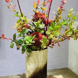 生け花✨ いつものデパ地下通路にて🏬 枝物の名前が分かる方、教えて 下さい^_^