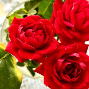 ミニ薔薇🌹 カットして、お部屋に🫗 発根するか⁈水挿しの薔薇の 葉っぱと🍃