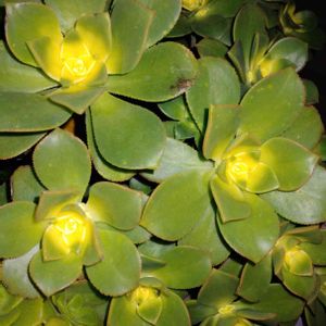 珍しく夜に投稿🌙*.。★*゚ 蛍光に光ってるように見えたのが 綺麗だったので😆 アエオニウムがどんどん成長する時期ですね この後、蚊に4ヶ所刺されました。 今日は暑かった 夜のベランダでも半袖で平気 今日はオカシイ あーかゆい❗