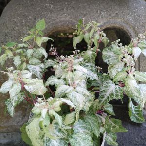 *ジュズサンゴ絣* 涼しそうな斑入りに白いお花の ジュズサンゴをお迎えしました。 🏷️白い水曜日にお願いします。 我が家のこぼれ種からの子は、まだ、ちっちゃい🍀苗。