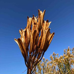 タカサゴユリとセイタカアワダチソウです。 タカサゴユリの種は、全て溢れて空っぽでした。 風もなく青空が広がり、とても穏やかな日ですね。 畑仕事もはかどります。