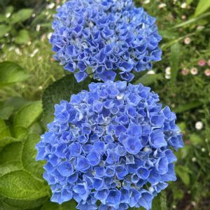 おはようございます😃 梅雨の晴れ間☂️☀️ 今朝も少しだけ花壇の草むしりをしました🌱🌱🌱 ①ハイドランジア マジカルレボリューション🩵💙 ②ハイドランジア マジカルコーラル🩵💚🩷 ③去年箱根のニコライバーグマンのガーデンで購入したアンティークあじさい💙💜🤎 色の変化が楽しみ😊♪ ④おたふく紫陽花💙 ⑤山野草 高嶺紺菊 高嶺と名前が付くから高山植物なんだろうけど暑い我が家で沢山咲いてくれます♡♡♡ 今年はマジカルクリムゾンが全く咲かない😂花芽なし 剪定が悪かったかな?? 御殿場錦もイヨジシテマリも😭🌀