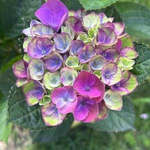 おはようございます☀ 気温が高いですね〜💦 でも風があるので少しは良いかな? ①アンティーク紫陽花に色が出てきました♪♪ ②ハイドランジア マジカルコーラル🩵🩷💚 お花によって色の濃淡がさまざま ③今年咲かなかったハイドランジアマジカルクリムゾン💜💚💙 過去picです✨ ④⑤ルブス サンシャインスプレンダー☘️ 真っ赤な実が付いてる🔴 何年も我が家にいるけど実が付いたのは初めて見ました🎵