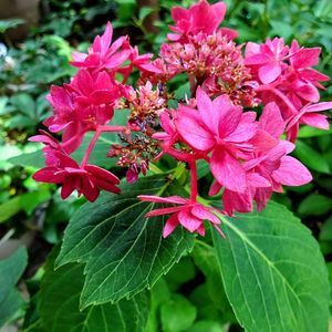 ウチのお庭の赤い紫陽花ハイドランジア 今年はこれひとつだけ〜