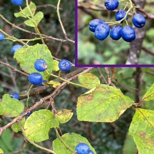 9/29 朝🐕散歩 この実はなんの実ですか? サワフタギ?? 高い木ではありませんでした わかる方いたら教えて下さいーー💕 沢蓋木と教えて頂きました〜