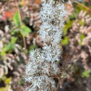 9/29 朝🐕散歩 サラシナショウマの花後 ブラシの様な花は9/4投稿 花の後は お米のような実が沢山つき☝️ その後熟し 濃い褐色になった果皮が裂けて種を放出する 来年も立派な花と会えますように💕