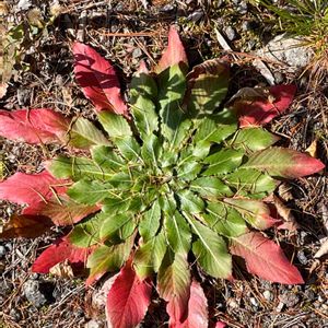朝🐕散歩 このロゼットは? メマツヨイグサ かと思いますが (違っていたらご指摘下さい) 越年草 北アメリカ原産で、各地にふつうに見られる。道ばた、荒れ地、川原などに生える。発芽した年の冬にロゼットをつくり、翌年の夏に開花枯死する。 松江の花図鑑より 地面に放射状模様のタペストリーが落ちていました〜😋