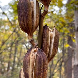 唐沢の滝周辺で ヤマオダマキ の袋果 滝を見に来たのでほとんどの人が雄大な 滝の方を向いていると思います 私は滝に背をむけて 小さな花を撮るのに必死‼️😓