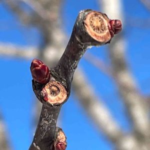 朝🐕散歩 ウワミズザクラ(バラ科ウワミズザクラ属) の冬芽でいいでしょうか? 昨秋実を見て上溝桜かな?と思っていました 冬芽でもまだ半信半疑?🧐 やはり花を見ないとわかりません 長野から