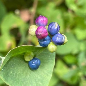 8/5 朝🐕散歩 サワフタギ(ハイノキ科) 名は沢を塞ぐように枝を斜め下に出すことから 去年 藍青色の実を投稿し沢蓋木と教えていただきました 6月に白い花が咲いたと思いますが 見る事が出来ませんでした その後若い実が出来ていました 秋にまたあの藍青色が見られるのが楽しみです💕