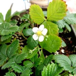 いちごの花が咲いてます( *´艸`) 寒さに負けず 頑張ってて可愛い💓
