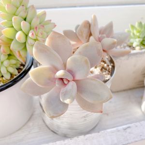 もう1枚𓂃◌𓈒𓐍 🏷毎月13日と14日は葉挿しの日 に参加します𖥧 𖧧 𓇥白牡丹 親株がダメになり 大丈夫そうな葉挿しから 育ったコたち𖥧 𖧧 🏷白牡丹saku 𓇥月花美人 ベビーまで可愛い色♡ 🏷月花美人saku 𓇥薄氷 こちらも親株が危うくなった為に もがれた葉っぱから育ったコたち。 🏷薄氷saku 𓇥プロリフェラ/プロリフィカ ランナーからも、取れた葉からも とにかく どんどん増える(*´ェ`*) お日様当たらない所は背伸びはじめたね… 🏷プロリフェラsaku プロリフェラの上は ペレスデラロサエ ピンクエッジ どんどん減ってしまって、 もうなくなりそうー꜆꜄꜆ 私的に難しいコデス。。 🏷ペレスデラロサエピンクエッジsaku