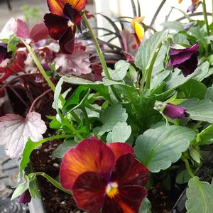 こんにちは☀️ 今日から朝晩は1桁になり、冬の到来を思わせる陽気になってきました。 今日はHC近くのクリーニング店に行く用事があったので、HCの園芸コーナーを覗いてきました(*´˘`*)♥ 今日の戦利品は… ☆ルドベキア アーバンサファリ サバンナサンセット(昨年は出会えず…) ☆コレオプシス リーディングレディ シャーリーズ(最低温度が➖25度に惹かれました) ☆カスミソウ ジプシーホワイト ☆シルバーレース ☆ばら蒔き葉牡丹(数が多いのでバラして寄せ植えで使えそう) ☆デージー バンバンローズ ※今回はPayPayで10%還元もあったのでラッキーでした。 ついでに昨日は、買い物ついでに園芸店に寄ったので、昨日の戦利品 ☆ビオラ 神戸べっぴんさん おしゃまなケリー(べっぴんさんもこんな可愛い名前があるのね。庭人さん監修らしいです) ☆葉牡丹 ジュエリーシリーズ PURE さらに一昨日の戦利品は、 ☆バラ咲きオキザリス ポンポン ☆名も無きビオラ(120円と格安) でした。 今日の投稿PWは、この秋初登場のビオラ ‘’ヌーヴェルヴァーグ‘’。 我が家では今年のビオラ唯一のお高い苗となってます。ヌーヴェルヴァーグさんらしい色合いですよね(∩´∀`∩)💕 出足があまり早く無かった事もあり、お高い苗で心に刺さるような苗に出会えず、 かえってよかったのかも。お正月は娘の借りたアパートに行く予定だし、あまり鉢を増やすと管理が出来ないし…。