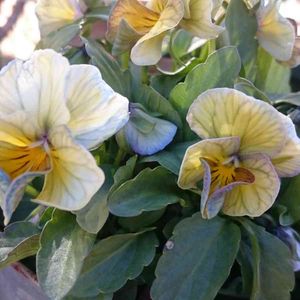 こちらは江原さん育種のビオラ*ヌーヴェルヴァーグ*💛🤎 出会った時はヌーヴェルヴァーグのお仲間だと思いませんでした🤭 ヌーヴェルさんたちは花びらの姿や色味がさまざまなんですね〜フムフム