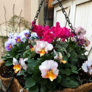 姫が気に入ったガーデンシクラメンとビオラ ヌーヴェルヴァーグ3つでハンギングを作りました(^^) ヌーヴェルヴァーグ、運良く3つだけ見つけましたv(^_^)v このビオラさんもシクラメンもフリフリで色合いが素敵でお気に入りです💕