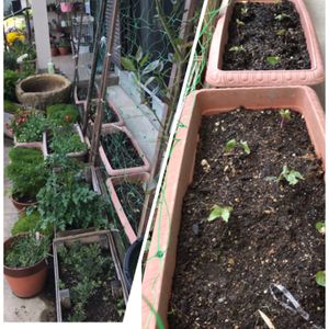 盛りだくさんなpicになりました。 上から センペルビウム バニラシフォンさん植え替えました。手作りのウッドプランターで… 今年もグリーンのカーテン設えます。色とりどりの花が咲くと思ぃます なぜ… 近くの公園でもみじの小苗貰ってきました。主人のおもちゃ 盆栽作ろうと思い プレゼント… コキアの苗を黒ポットに植え付けました。ご自由にお持ち帰りくださいです。 本日メインイベント 今朝 収穫したイチゴで参加しまーす … 毎日5個くらいあります。2人で仲良くいただいてます。 15日 どんより曇り 少しの間晴れ間… 12.2℃ /22.4℃ 朝イチ14.1℃ 夕方14.6℃ 2年目クレマチスに土増し なぜか土が減る… ちまちま草引き 疲れました。