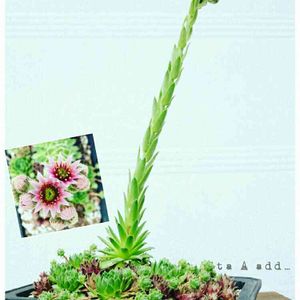 おはようございます☔ 先日HCで『エケベリア』の札が刺さった状態で見つけました‼ 斑なのかな? キレイな葉だったので連れ帰りました。 徒長していて本来の姿ではないと思うけど 君はいったい誰なのか… そもそもほんとににエケベリア?? どなたかおわかりでしたらお願いします。 皆さま、素敵な日曜日を💚 @*ゆか*さんに『デコラ』と教えていただきました🎵 *ゆか*ちゃんありがとう〰💕
