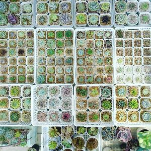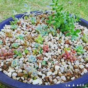 こんばんは😃🌃 寄せ植えを色々解体して 集合しましたプロリフェラ。 主にエケと同居だった子はピンク💗 セダム等と同居していた子はミドリ💚 この差はきっとお水だね。 集まってもらった理由は ただ1つ☝❕ みんな仲良くして、モリモリのプロリ丼になってね〜💚