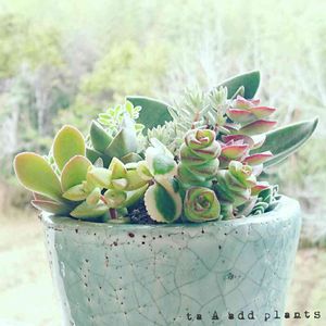 こんばんは🌃 火祭りの光 苦手なクラッスラ。 これは後ろ姿なんだけど、これでも1番キレイに見えるアングル。 それぞれ別々の寄せ植えで過ごしてきた子を再会、同居させました。 皆さんご投稿のpicと比べると控えめな紅葉ではあるものの よく頑張った🎵 元々同じポットで売られていたときは青々していたのにね‼