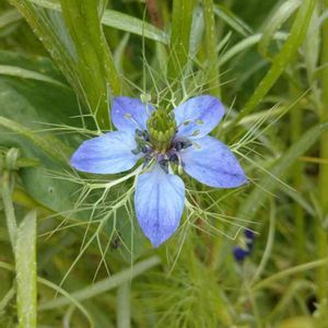 ミックスシードを蒔いたところに今はニゲラも咲き始めています😃💕 思ってたより小さくて可愛い🤭