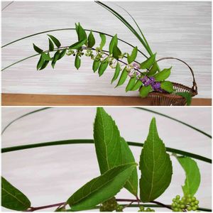 小紫を生けると直ぐに葉が萎れるので 葉を取って実だけで生けると友達に習いました。 でもこのアプリで皆様から、雨の後に切るとか 酢水に浸けると習いました。 昨日、切って直ぐに酢水に20秒(ネットには2分とありましたが覚え違いで20秒😆)浸けてから水に浸けて家に入り水切りしながら生けました。 今日の葉は生き生きしていました💕 これまで切って腕に抱えて家に持ち込み水に浸けていました😥💦 今回、植物を大事に水を切らさず扱えば家の中でも元気に咲いてくれるという当たり前の事をやっと認識した次第です😅💦