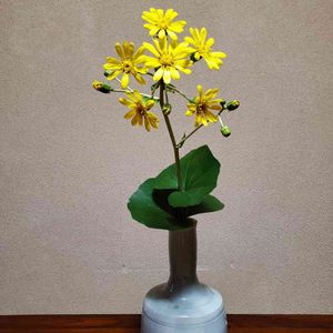石蕗を一種生け 葉をどうしたらいいのかわかりません😥 花数も多すぎ?😜