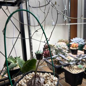 そういえば…… 今年は長谷川園芸さんの抽選落選し、 某植物屋さんで行われる販売会まで はるばる行きました…! そして今年はなんと4株のお迎えに成功🙌🏻 特にこの株には目を惹かれました。 良い意味で あんまり長谷川さんらしくない🐢 尖ったタイプです😎 元気な蔓を伸ばしています🌱 他の3株もそのうち投稿します✏️
