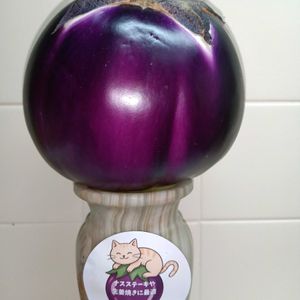 ボナセーラ~ 茄子こけしでございます🍆 565gのズッシリ感 ソフトボール🥎より大きい! ①上質の厚切りステーキにご賞味あれ…? ②生姜焼きでも…?