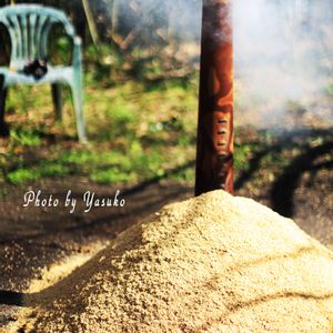 クンタン作り 見たこと無い方がいるようなので 掲載します あまりこういう写真は掲載しませんので 後で削除するかもしれません あしからず。 クンタンとは 籾殻(お米のから)を蒸し焼き(炭状にする灰にはしない) これは殺菌作用があるので私は薔薇の用土に混ぜたり 挿し木用土に混ぜたり とてもよく使います 鉢植果樹を作っているのでその用土に混ぜたり 庭にも蒔きます ですからたくさん作ります 大きな袋10袋くらい作りますよ~ この中にサツマイモ入れて焼き芋 最高です今入ってます(*^^*)ポッ・・お・や・つ