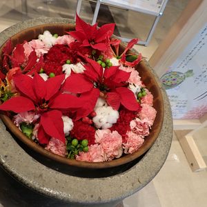 今日のお花 過去写真📷 2023年12月23日(土) Merry Christmas🎄🧑🎄🎄 🎅さんも来ないけど 🎁プレゼントもないけど 気持ちだけ💫 今日のお花 ポインセチア❤️ 駅ロータリーのビル 花手水でした