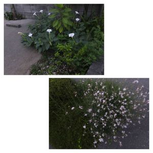 過去写真📷 2023年9月26日(火) ガウラの刈り取られた植え込みと すぐそばに飛び地して咲き誇るガウラ たくましいっちゃ❣️
