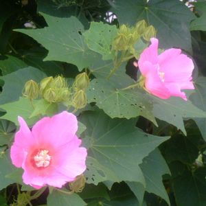 モミジアオイ 三態🌱 1枚目 過去写真📱 2021年7月31日(土) 赤ちゃんに気付いて 見上げたら… 2枚目 過去写真📱 2021年7月31日(土) 見上げるとお母さんの姿が❣️ その頃はもちろん名前も知らず GSで名前を 教えてもらったんだと思います 3枚目 過去写真📷 2024年7月28日(日) ここから拝借した種が 冷蔵庫で眠っています 昨日のモミジアオイと同じ木です❤️