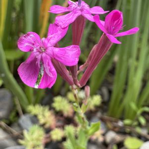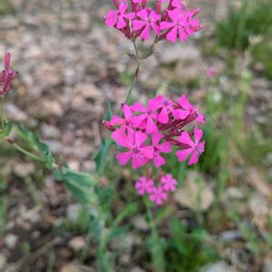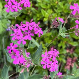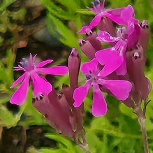 「ムシトリナデシコ」 ナデシコ科マンテマ/シレネ属の一年草 原産地>ヨーロッパ ※G.Sサイトでは、アフリカも含む記載あり 別名>ハエトリナデシコ、コマチソウ、ムシトリバナ シレネ属の一部のこの花。 茎に粘液を持ち、虫が張り付いたりするためムシトリナデシコとも呼ばれますが、食虫植物ではありません。 ○花言葉 その粘液を出す特徴から、 「粘着質」「罠」「誘惑」などのトラップを連想させる花言葉になったらしいです。 ※子供の頃にどこの家庭でも活躍していた 「ハエ取り紙」が思い出します…昭和の話でした😁