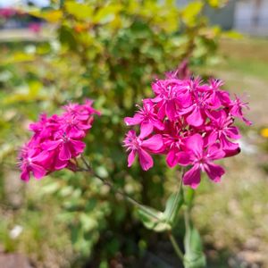 お散歩で出会った ムシトリナデシコ🏵️ 鮮やかなピンク色が眩しかったです✨ ノースポールは、今日の暑さに涼やか〜 水分補給しながら散歩しないと🥤