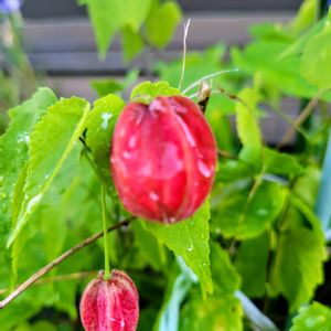 おはようございます😊 12月10日(火)☁☔11℃予報 雨上がりお花達雨粒✨✨ チロリアンランプ❤️🍃可愛い 🏷0の付く日は雨粒の日 まだ元気なお花達 皇帝ダリア今年はまだ冬支度出来ない 寒い中咲いてくれています チコリの葉っぱ大きくなった🌿冬越し出来るのかなぁ 素敵な一日をお過ごし下さい