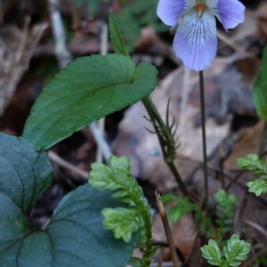 ナガバノタチツボスミレ。確か山陰地方に由来する個体。 その名の通りタチツボスミレより長い葉が出るが、そうなるのは茎生葉が主で、早春の根生葉のみの状態ではタチツボスミレと区別できないような形のことが多い。 また花の形はニオイタチツボスミレに似た丸っこい感じになる。