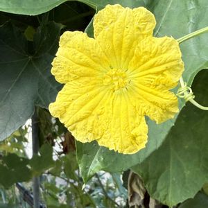 おはようございます。へちまの雄花、手の届かない高い所で咲きました。大きくて見事な花です。全体的に高過ぎるので摘芯しました。😍🥰😻😸🤗😊