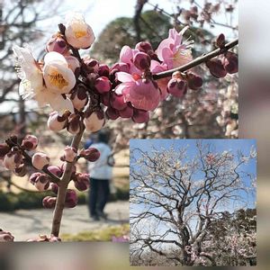 水戸の偕楽園の梅です。一本の木に白とピンクの花が咲いている木があり初めて見ました。たくさんの梅の木がありますが、まだ蕾の木や、風で花びらが舞う満開を過ぎた木も有りました。
