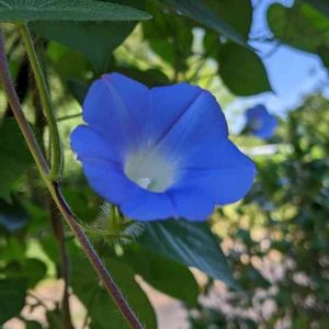 今朝の朝顔💠 この場所はバラのアーチですが…こぼれ種からです♪肝心な主役不在😅 最近ようやく開花しました🎶 えっ👀⁉️やっぱりブルーです(笑) まっ涼しげだからいいかなぁ~✨