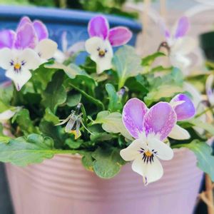 お友達にいただいたお花たちで昨年12月末に寄せ植えしたものです さすが花友達さんセレクトのお花たち、モリモリになっても私が作ったんじゃないみたいなまとまり感があります〜! ワイヤープランツスポットライトだけうちにあったものを足しました‥モジャモジャ‥ 碧いうさぎ、はじめましてでしたが丈夫で花つきもよく、とにかくかわいい!さすが人気あるの納得ですー🐰 ビオラアンティコ、ピンクはとってもモリモリでまとまりよく、お花が咲き進むとグラデーションの色変化も楽しめて素敵なビオラでした💕 最近の気温の高さでビオラ達が徒長しだしてます。いつまでもってくれるでしょうか😭