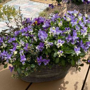 ビオラ 碧いうさぎ 寄せ植えその後です 右の子が頑張っています😄