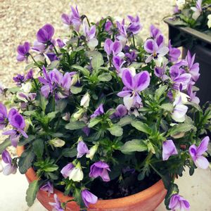 お早うございますo(^o^)o 今朝は雲が低くて強風でも晴れそうな⁉ お花は自慢のヴィオラ 薔薇の次に優先でケアをしてます🌿 見元ビオラのタグには可愛いイラストが描いて有ります ネーミングもファンタジーあふるる 見元さんの娘さんイクミさんが作ってるんですよね😆 碧いうさぎと桃色レジーナは一昨年根腐れで失ったもの… 今回は良く咲くモリモリに(^-^) うさぎは小さく そして切り戻して脇芽が沢山出てジャングル✨蒸れそうだし 種を付けない様に細かくチェックしてますから💂 (白より薄紫が目立つ) このミニコンテナ可愛い😄買って良かったです 追伸 あんまり切り戻しは良く無いわ 大きな鉢に植えるならいいかもね 来月はきっとムレムレの九州にw