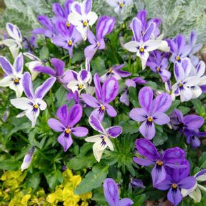 ずーっと元気な ビオラ 碧いうさぎ💙 繊細でか弱そうに見えるけどとっても元気で丈夫な良い子です🌱 たくさん花が咲いています💠 いつものことだけどこのコは「かわいい」しか言うことがありません💕カワイイ!