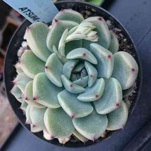 渥美園芸さん出身の 【ギャラクター】 爪ツンツンで好きな子です 秋に植え替え予定でしたが とても元気に大きくなり おしくらまんじゅうしはじめ つぶれてきたので 蒸れがこわい・・・ こんな時期ですが植え替えしました しばらくは半日陰、涼しいところで見守ります 4号から4.5号?にサイズアップ この鉢に使った塗料のうち 5色はカインズホームで見つけたものです✨
