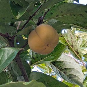 畑の南西の方に1本だけカキがあります。 今年は春先剪定しそこなって ボサボサです。 実もほとんどないようです。 1コだけ見つけました。 セミの抜け殻の方が多く見えました。 3コも見えました。